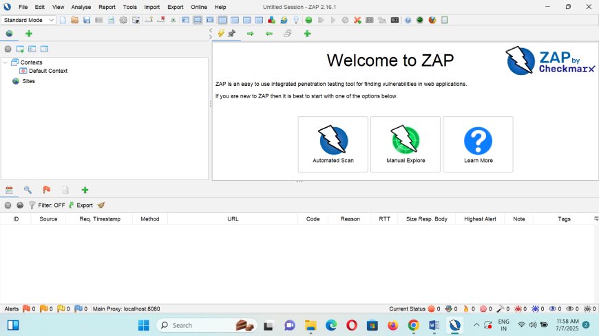 OWASP ZAP is an open-source web application security scanner developed and maintained by the Open Web Application Security Project (OWASP), a trusted nonprofit organization in the cybersecurity community. ZAP is widely used for penetration testing and vulnerability assessment of websites. It acts as a "man-in-the-middle" proxy that intercepts and analyzes communication between the browser and the web server, helping security analysts detect security flaws.