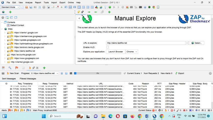 and click Start Scan. - Spidering the Website: ZAP will crawl through all pages, collecting links, forms, and inputs.